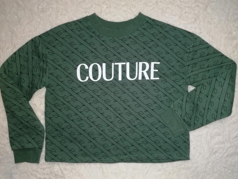 Свитшот укороченный на 9-10 лет, рост 140см. Замеры длина от плеча - 44 см, ширина-47,5см, ширина плеч-50, длина рукава от плеча с резинкой-46см Состав:83%-коттон,17% полиэстер