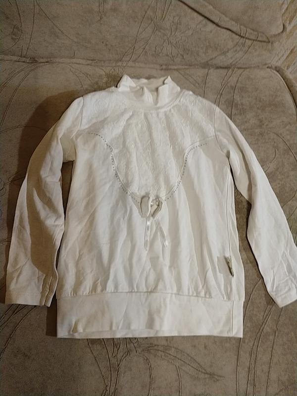 Детская школьная нарядная блузочка, с кружевом, бантиком и блестками 95% cotton.10 размер.