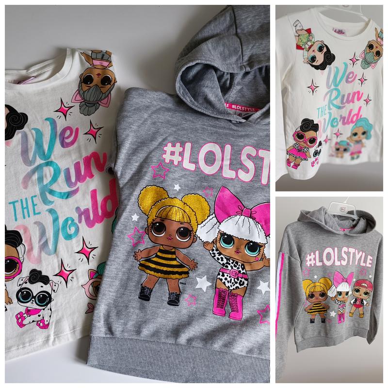 2 Свитшота Лол -цена 380грн стана новых.На возраст 9р/без утепления,флиса. •Белая кофта длж.50,рукав 47,плечи 31,шир.подмышками 37 •Серая кофта с капишоном длин.48,рукав от шеи 59,шир.подмышками 40