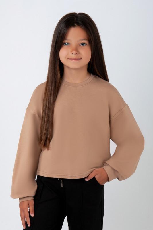 Свитшот для девочек изготовлен из полотна "Футер двухниточный". Модель укороченного свободного кроя, этот стиль – это главная тенденция в мире моды, такие вещи выглядят спокойно, комфортно и придают образам "Легкости". Свитшот отлично сочетается с брюками, джинсами - такая кофточка неотъемлемый атрибут в гардеробе вне зависимости от пола или возраста. Полотно: футер двухниточный. Склад: 95% бавовна, 5% еластан. Советы по уходу: стирать при температуре не более 30°C.