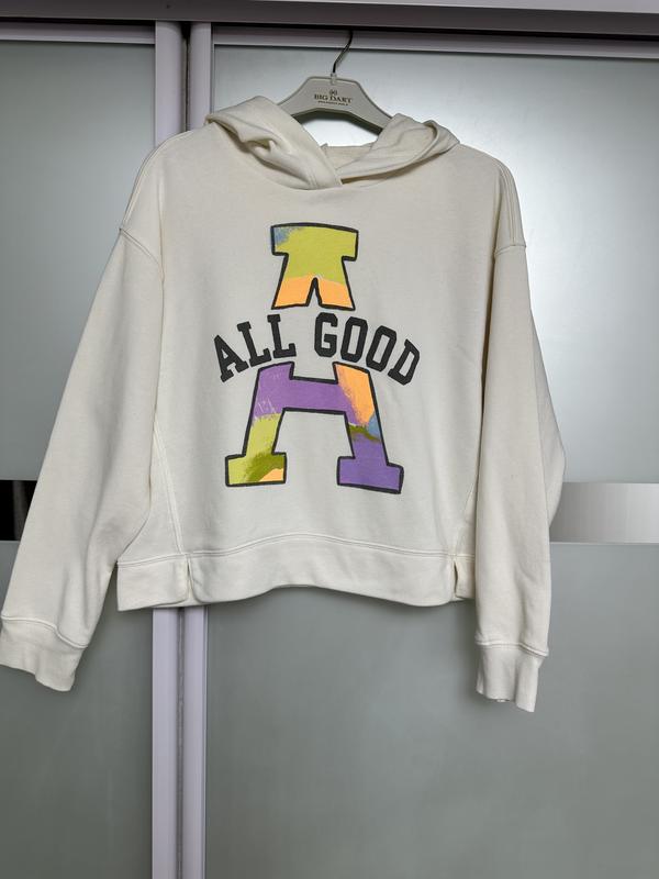 Стильный и очень нежный свитшот в идеальном состоянии. Надевался несколько раз в школу. Стан идеален. Заміри на фото. Дефектов нет.