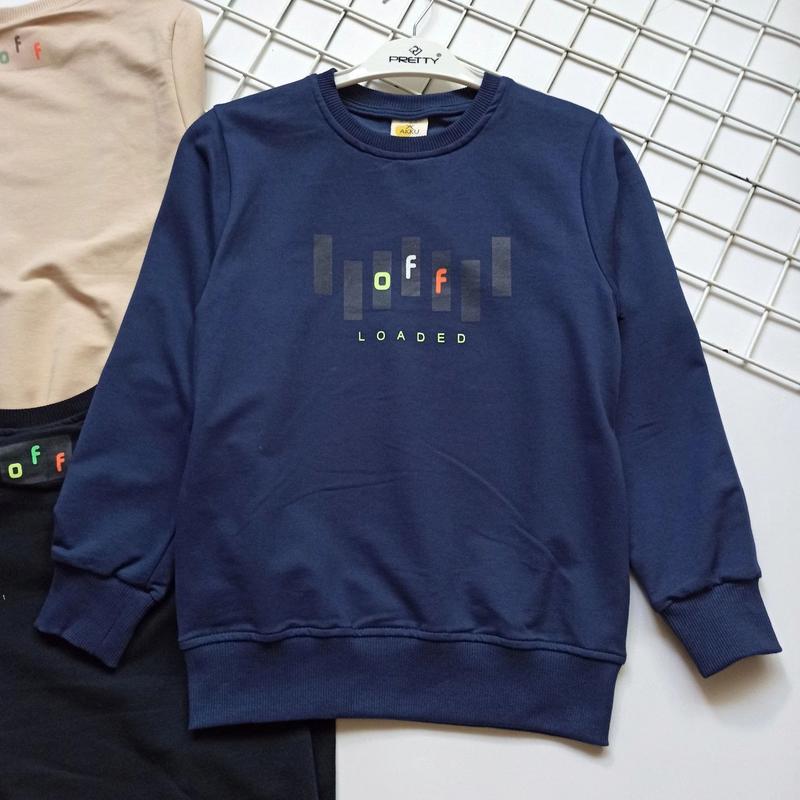 Свитшоты для парней в которых каждому будет удобно, красиво подойдут под любимые джинсы и штаны. Производитель Турция. Ткань качественная двунить Замеры: 8-9 длина 51см рукав 48см пог 39см 9-10 длина 52см рукав 49см пог 40см 10-11 длина 54см рукав 51см пог 42см 11-12 длина 58см рукав 55см пог 44см Цена 695грн ▪️N-79