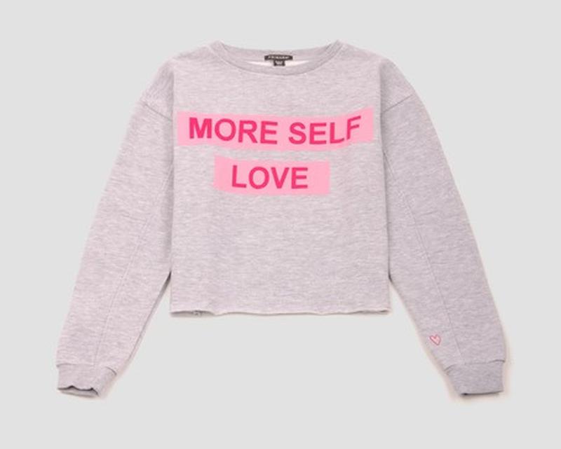 Модный свитшот от Primark с оригинальным принтом “More Self Love” спереди 💖 Укороченная модель с необработанным низом добавляет трендовый вид. Оригинальное сердечко у горловины на спине — особая изюминка 🌟 👖 Отлично сочетается с широкими джинсами для стильного образа! 📏 Замеры (размер 152): • длина — 47 см • рукав от горловины — 66,5 см • ширина в груди — 47 см 🛍️ В нашем магазине большой выбор стильной одежды для подростков и всей семьи — заходите посмотреть!