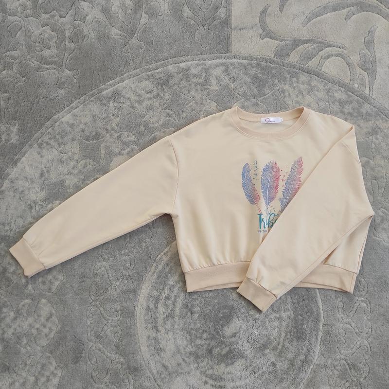 Полуобхват груди - 53 см Низ - 42 см Ширина плечей - 53 см Длина рукава от плечевого шва - 47 см Длина изделия спереди - 37,5 см Длина изделия по спинке - 44 см Свитшот - состояние идеальное. Ткань приятная к телу, эластичная.