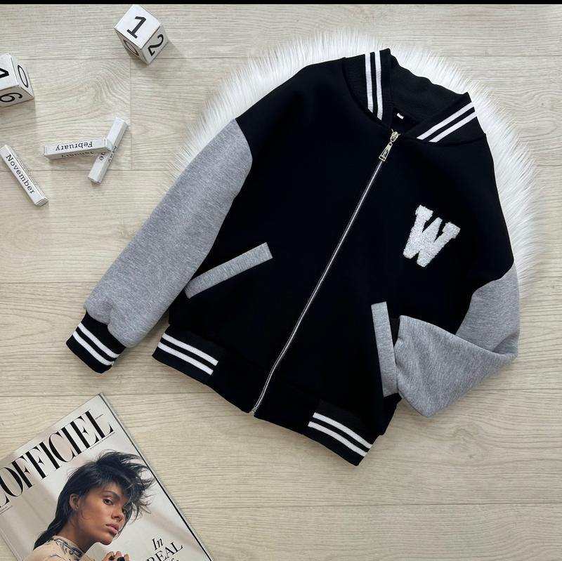 Крутой теплый бомбер 😎🔝😎 Базовый и в то же время очень стильный 🤩 Действующие карманы 👌🏻 Манжети-резинка 😍 По всей длине молния ⚡️Буква - нашивка 😉 Ткань: ТУРАРОККА трехнитка на флисе (НЕ КОШЛАТЫТСЯ⚠️) Производитель: Украина 🇺🇦 ЗАМІРИ ⤵ +/- 1-2см!!! р.134- длина от плеча 52см /рукав от горловины 57см / ПОГ 48см р.140- длина от плеча 56см /рукав от горловины 61см / ПОГ 49см р.146- длина от плеча 58см /рукав от горловины 63см / ПОГ 50см р.158- длина от плеча 64см /рукав от горловины 67см / ПОГ 51см