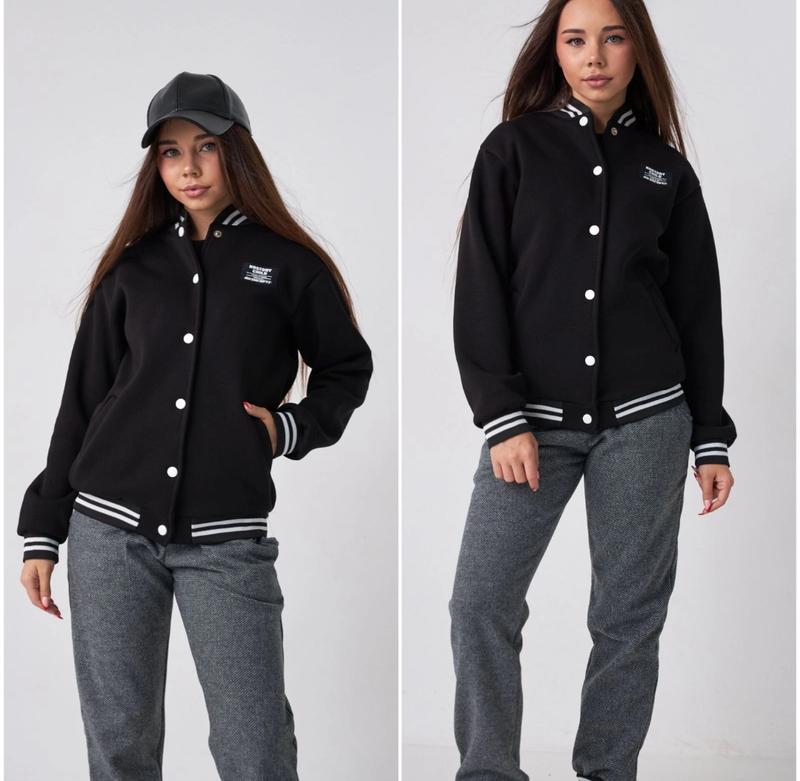 Теплый бомбер оверсайз Застегивается на кнопки. Есть карманы. Ткань - трехнитка пенье с начесом. Замеры: (рукав от плеча) 140 длина - 57см, полуобхват груди - 45см, рукав- 43см. Мс