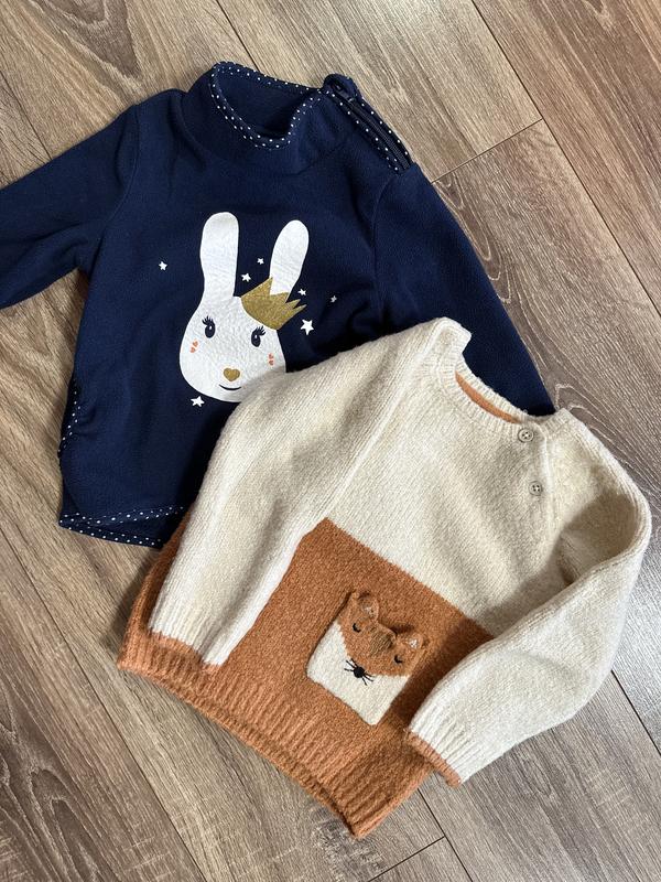 кофты тепленькие на девочку, одна флисовая и связанная, размер 92-98. Цена за две кофточки