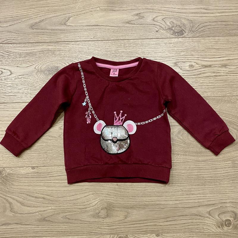Кофта с начесом, размер 98. Рисунок сумочка на цепочке, сама сумочка функциональна - это кармашек на липучке, украшенная пайетками. Новая, покупали засалегите, но уже выросла