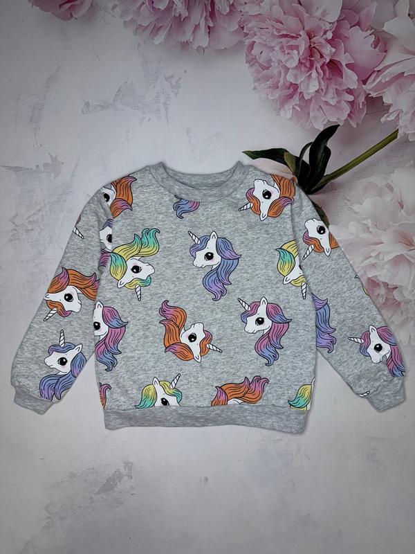 Утепленный свитшот с единорогами Состояние идеальное 🏷️H&M 4-6 лет/110-116 Длина 42. ПОГ 38. Рукав 39