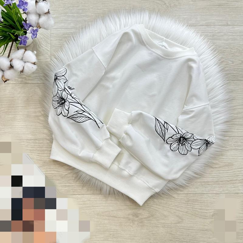 крилова Стильовий світшот з вишитими квітами😍🌸🌸🌸😍 Вільний крій 🤩 Манжети - рібана 👌🏻 ВИШИВКА🥰 Дуже класна якість 👍🏻 Тканина: турецька двонитка 🔝 Виробник: Україна 🇺🇦 ЗАМІРИ +/-1-2см!!! ▪р.134- довжина від плеча 47см/ рукав від горловини 56см/ ПОГ 43см ▪р.140- довжина від плеча 49см/ рукав від горловини 57см/ ПОГ 44см ▪р.146- довжина від плеча 51см/ рукав від горловини 59см/ ПОГ 46см ▪р.152- довжина від плеча 53см/ рукав від горловини 60см/ ПОГ 48см ▪р.158- довжина від плеча 55см/ рукав від горловини 63см/ ПОГ 49см ▪р.164- довжина від плеча 58см/ рукав від горловини 64см/ ПОГ 50см