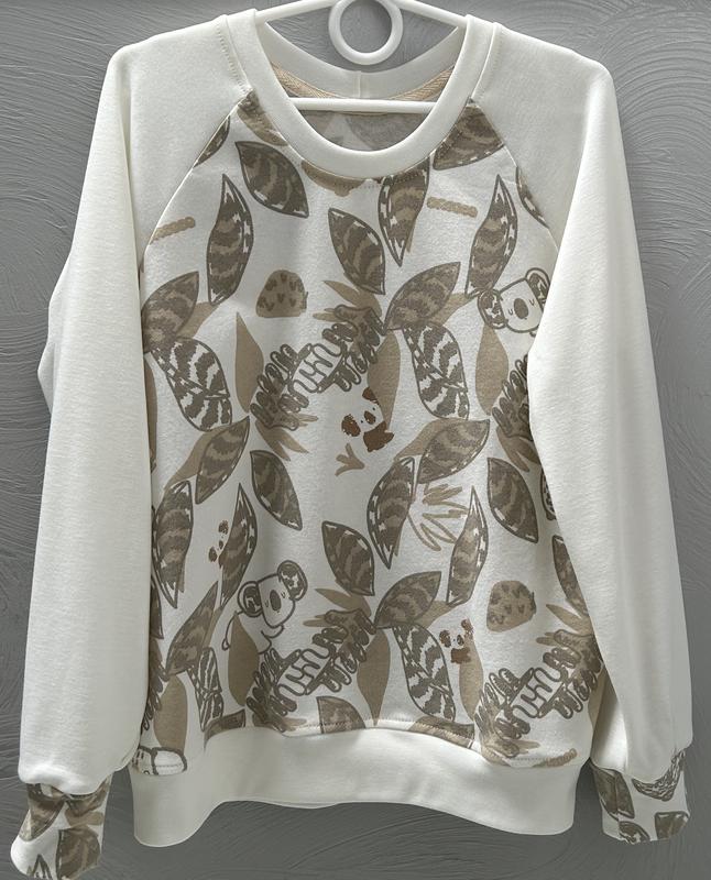 Світшот молочного кольору з невеликим начосом на дівчинку 7-8 років. Тканина - двунитка з начосом ( 95% бавовна, 5%- еластан). Довжина - 51 см, пог - 39 см, довжина рукава від горловини - 56 см.