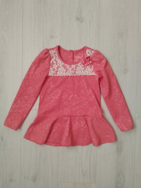 Нарядная туника фирмы Nannette, по бирке размер 5р. Цвет нежно коралловый. Замеры : пог - 30см, длж.от плеча - 49см, рукав от плеча - 43см, плечо - 5см.
