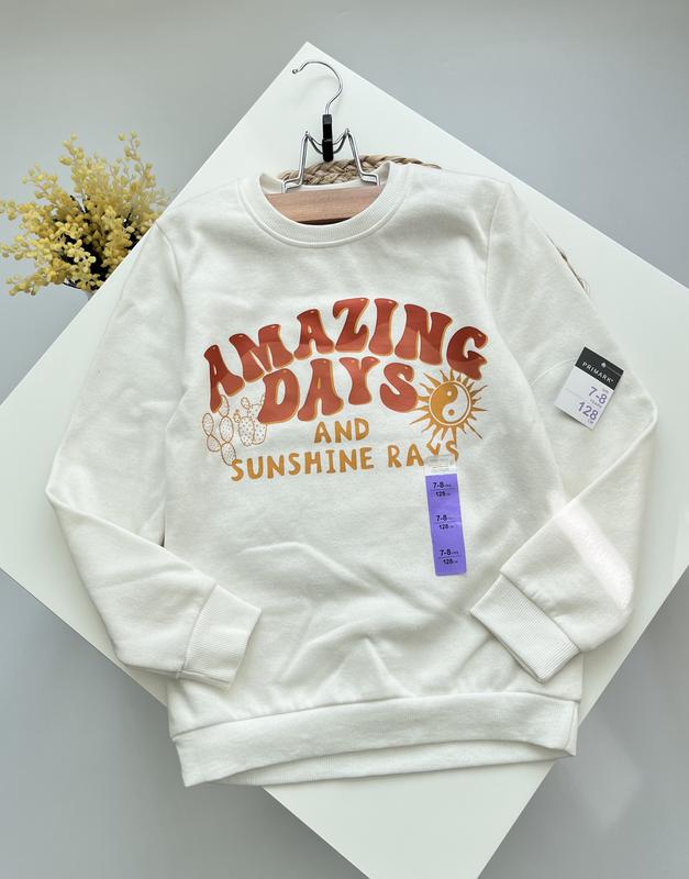 🔝Свитшот утепленный, цвет молочный Pr| mark 💛 Стан - НОВИЙ •1,5-2 года, рост 92 ▪️Д -38, ПОГ- 32, Д рукава от плеча - 31,5 •2-3 года, рост 98 ▪️Д -41, ПОГ- 34, Д рукава от плеча - 33 •4-5, рост 110 ▪️Д -45, ПОГ- 34, Д рукава от плеча - 39