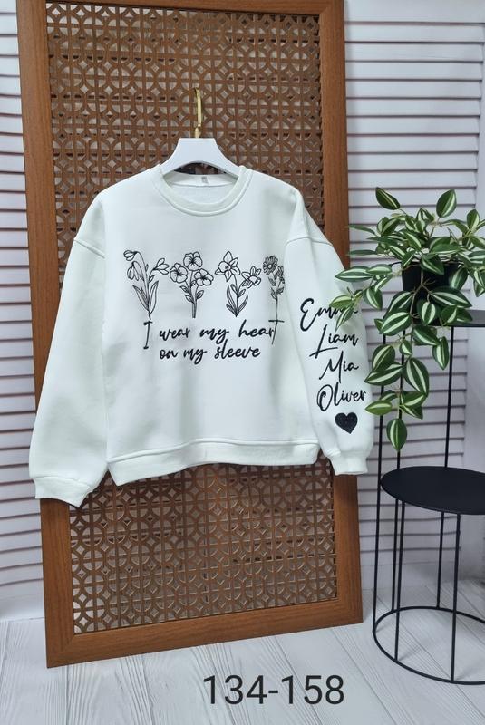 ЧЕЛОВЫЙ ТЕПЛИЙ СВЕТОПОТ ткань трехнитка пенье туречки на флисе свитшот с красивой вышивкой устойчив к катошкам РЕКОМЕНДУЮ! 📍134(1 шт)-длина свитшота 51, пог 44,рукав от горловины 62 📍140(1 шт)-длина свитшота 53, пог 45,рукав от горловины 63 📍146(1 шт)-длина свитшота 54, пог 48,рукав от горловины 64 📍152(1 шт)-длина свитшота 56, пог 49,рукав от горловины 65 📍158(1 шт)-длина свитшота 58, пог 50,рукав от горловины 68 +-2 см