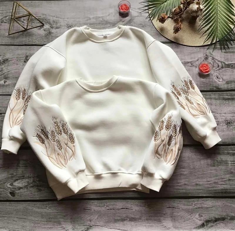 В наличии! Теплый ситшот с "Колосками" На рукавах вышивка - не рисунок! Ткань - турецкая трехнить пенье на флисе. Качество супер! Не кошлатиться. Цвет- молочный Цена: 770грн. Замеры: 134 длина - 45см, полуобхват груди - 45см, рукав от горловины - 57см. 140 длина - 47см, полуобхват груди - 47см, рукав от горловины - 61см. 146 длина - 50см, полуобхват груди - 48см, рукав от горловины - 63см. 152 длина - 52см, полуобхват груди - 50см, рукав от горловины - 66см. 158 длина - 54см, полуобхват груди - 51см, рукав от горловины - 67см. 164 длина - 56см, полуобхват груди - 52см, рукав от горловины - 70см. Размеры в наличии: 134-1шт 140-1шт 146-1шт 152-1шт 158-1шт 164-1шт