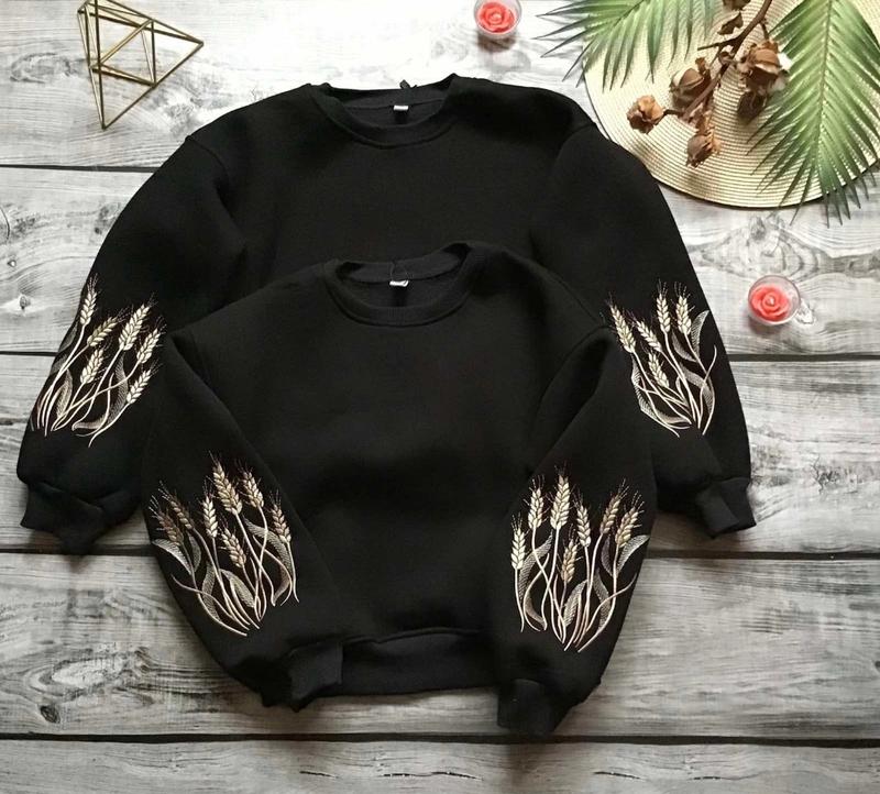 Теплый ситшот с "Колосками" На рукавах вышивка - не рисунок! Ткань - турецкая трехнить пенье на флисе. Качество супер! Не кошлатиться. Цвет-ЧЕРНЫЙ. Замеры: 134 длина - 45см, полуобхват груди - 45см, рукав от горловины - 57см. 152 длина - 52см, полуобхват груди - 50см, рукав от горловины - 66см. 164 длина - 56см, полуобхват груди - 52см, рукав от горловины - 70см.