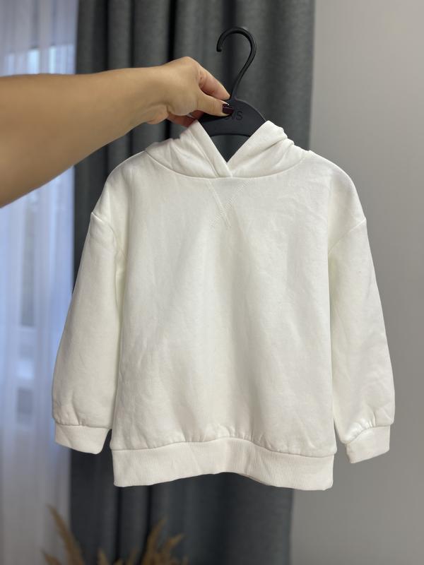 Стильный белый свитшот для девочки. 5-6 лет. 116 размер. Новый, но без бумажной бирки❗️ Замеры в сообщения Этого размера есть еще черные капроновые колготы