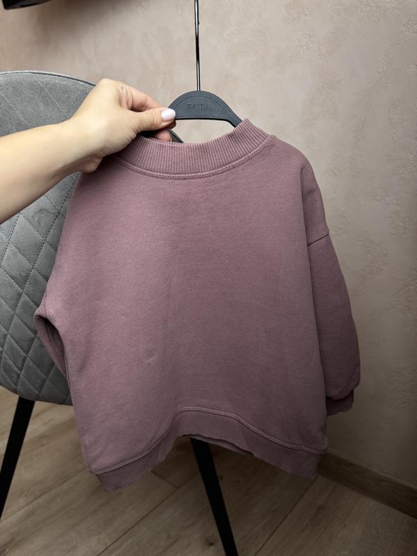 Свитшот в красивом цвете, пригляну выглядит просто невероятно! Есть маленький дефект - небольшая дирочка (видимно на фото), но он настолько минимальный, что в носке совсем незаметен. Больше никаких дефектов, состояние идеально. Внутренняя сторона с тоненьким флисом - теплый и очень удобный. По дополнительной информации обратитесь в частные сообщения. Размер 98(2-3р)