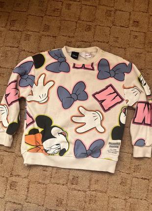 Очень яркий и стильный свитшот с Микки, оригинал, покупали в оф магазине. Утеплен флисом Замеры: Длина -43 см, рукав -36 см