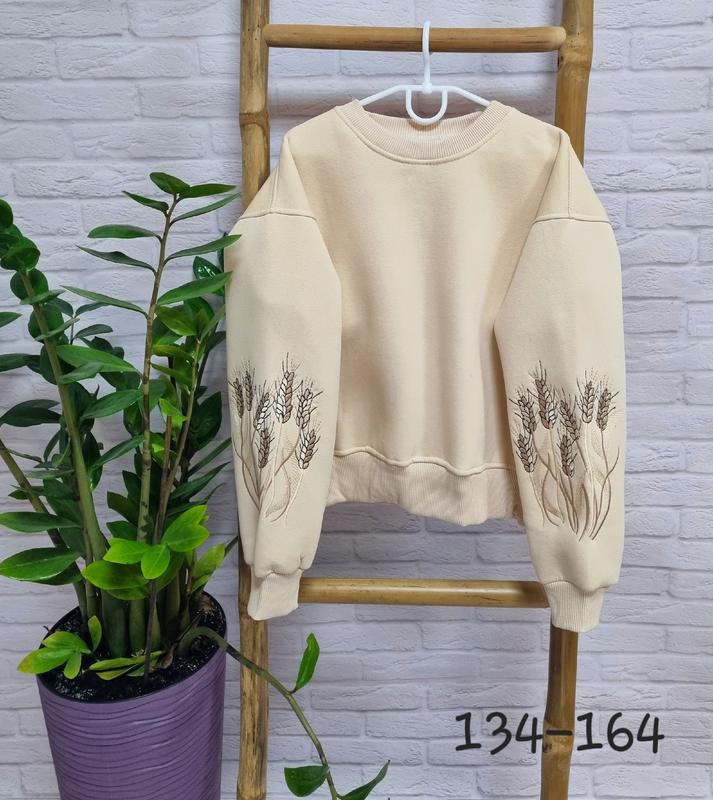 💗В НАЯВНОСТІ Хит сезона теплый свитшот с вышивкой Ткань трехнитка пенье на флисе НЕ КОШЛАТИТЬСЯ ОТМЕННАЯ КАЧЕСТВО! 📍134)-длина 45,пог 44,рукав от горловины 60, от плечевого шва 43 📍140)-длина 47,пог 45,рукав от горловины 60,от плечевого шва 44 📍146)-длина 50, пог 48,рукав от горловины 62, от плечевого шва 48 📍152)-длина 53,пог 50,рукав от горловины 65, от плечевого шва 50 📍158)-длина 55, пог 51,рукав от горловины 67, от плечевого шва 51 📍164)-длина 56,пог 52,рукав от горловины 72, от плечевого шва 52 +-2 см