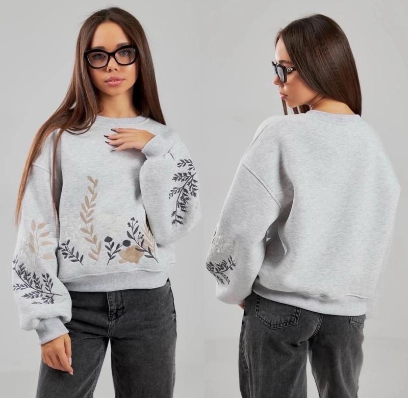 арт 5595 Хитовой свитшот с настоящей вышивкой невероятной красоты Ткань трехнитка пенье на флисе (не подвержена появлению катышков) манжеты измельченная рост/длина/пог/рукав от горловины похибка +-2см 140-146/44/52/60-1шт Тан
