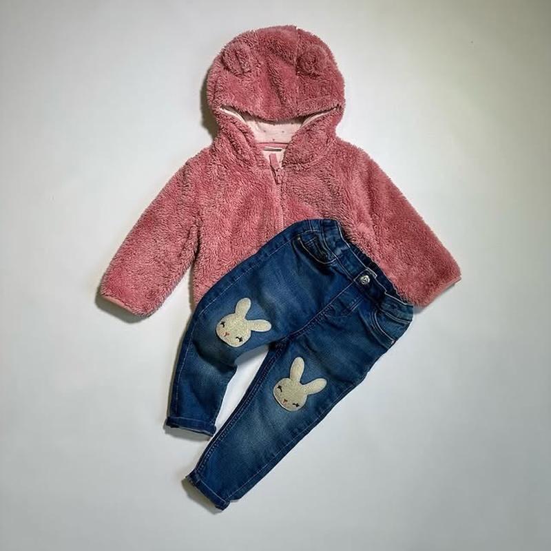 Возраст: 2 года Джинси H&M Длина: 49 см Внутренний шов: 30 см Ширина: 25 см ( регулируется ) Тедди Next Длина: 35 см Длина рукава: 28 см Ширина: 32 см