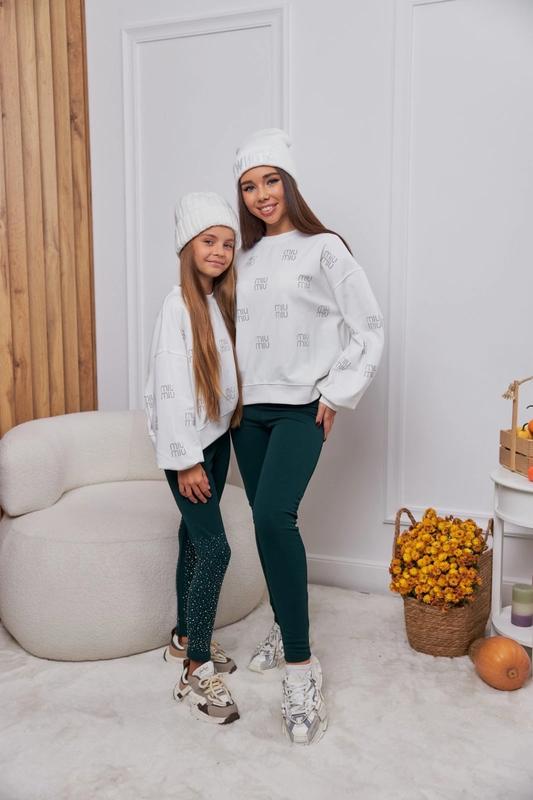 💝Свитшот декорирован блестящими камушками "Miu miu" 🏷Размеры: 134-170 🪡Ткань: интерлок (плотный трикотаж). Хорошо комбинируется с любым образом. Хорошее качество!