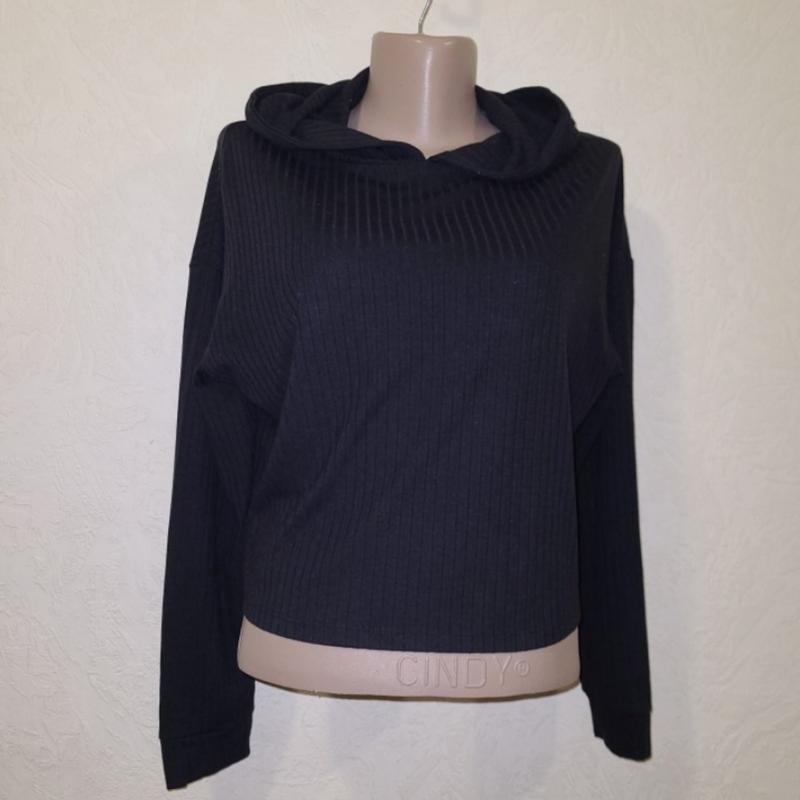 Свободная кофточка с капюшоном, черного цвета, ткань в рубчик. Измерение на фото