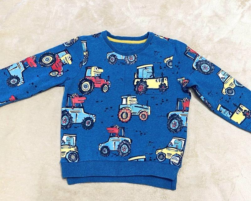 Свитшот в идеальном состоянии бренда Nutmeg.Приблизительно на 5-6 лет. 95%бавовна. Сзади немного длиннее, чем впереди. Все детки разные поэтому смотрите обязательно на замеры: Полуобхват плечи 29см, грудь 38см, длина изделия 43см, рукав 38см.