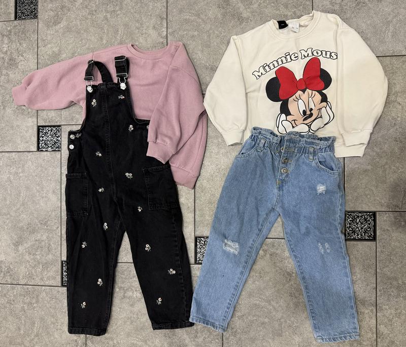 Набор джинсовый комбинезон и розовый свитшот Zara размер 110 будет хорошо на 104. Состояние нового, джинсовый комбинезон одевался несколько раз очень стильный. Цена 600 за набор Набор джинсы и свитшот с Микки Zara 104-110. Стан идеален. Красиво будет на 104 размер Набор 550 грн Если брать два будет хорошая скидка