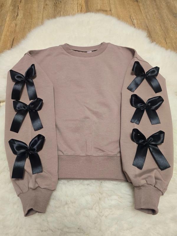 Стильний світшот з трендовими бантиками Тканина турецька двонитка пеньє манжети рібана Супер якість Рекомендую зріст/довж/пог/рукав від горловини Похибка +-2см 134/45/41/58-1шт 140/47/43/61-1шт 152/52/46/67-1шт