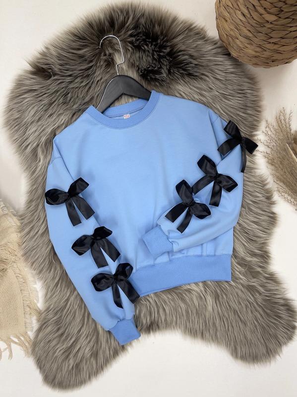 Таня Арт 6071 Стильный свитшот с трендовыми бантиками Ткань турецкая двунитка пенье манжеты измельченная Супер качество Рекомендую рост/длин/пог/рукав от горловины Похибка +-2см 134/45/41/58-1шт 140/47/43/61-1шт 146/49/45/65-1шт 152 / 52 / 46 / 67-1шт 164/58/48/70-1шт