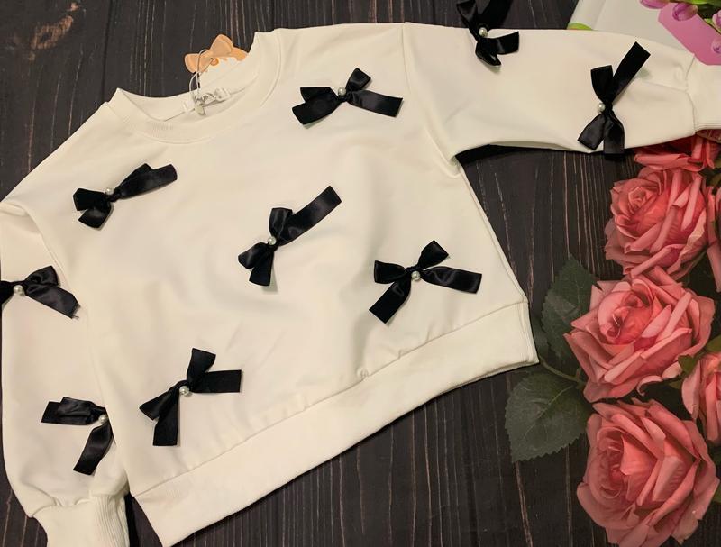 ✔️Нарядный свитшот ✔️Тканина двонитка ✔️Украшен бантиками, качество отличное, рекомендую пог/длина/рукав от горловины ✅4-37/39/44 ✅6-39/43/48 ✅8-41/46/51 ✅10-42/49/54 ✅12-43/52/58 ✅14-45/55/61 ✅134-1 шт ✅140-1 шт ✅146-1 шт ✅152-1 шт ✅158-1 шт ✅164-1 шт Арт дш