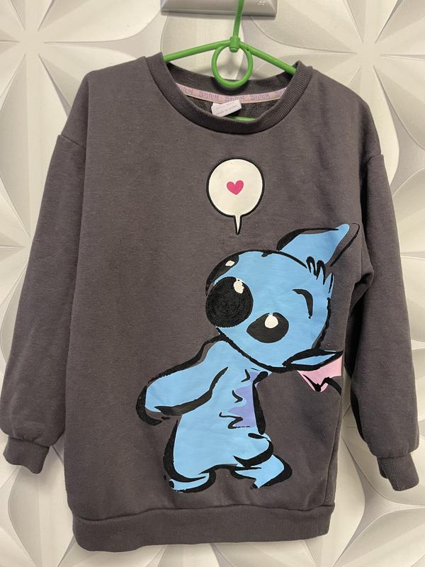 Свитшот на 6-7 лет, немного удлиненный, немного утепленный флисом, Primark Disney, 122, модного графитового цвета, в очень красивом состоянии, принт в идеале.