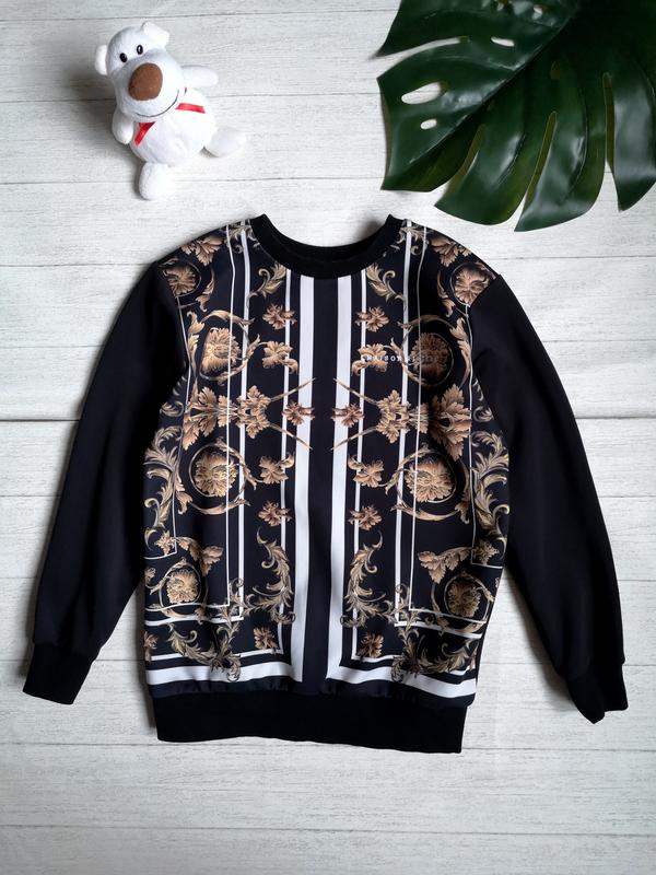 Красивый свитшот из эластичного материала в стиле Dolce Gabbana. Замеры : длина 55, ширина 44, рукав 48, ширина по низу 35.
