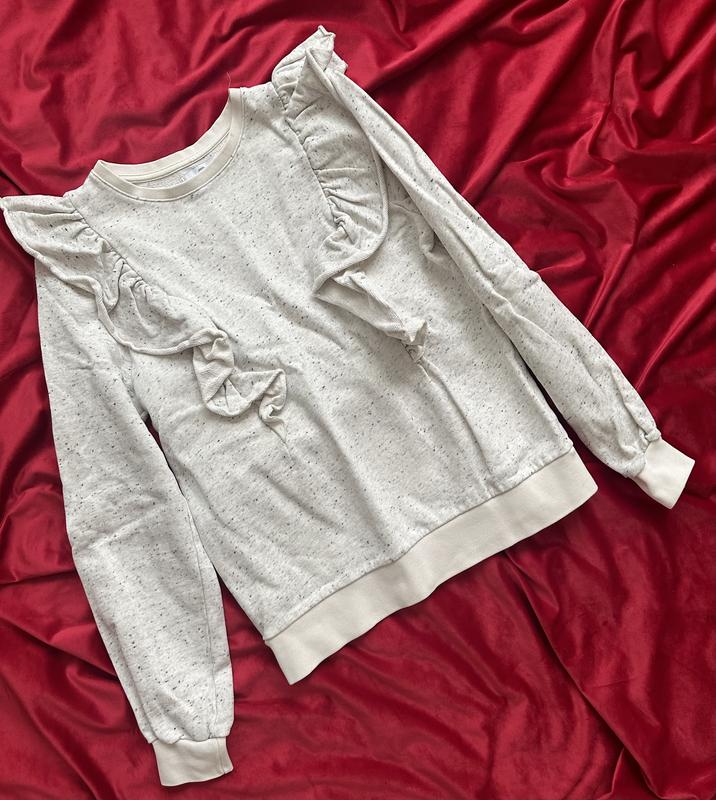 Красивая детская кофта с рюшками для девочки: Подойдет на 8-12 лет ориентируйтесь по замерам/ Тянется,плотность средняя / Длина 57,5 см/ Плечи35 см/ Рукав 60,5 см/ Пог 46 см/ Пот 45 см/ Знизу 44 см/ Продается без возврата/