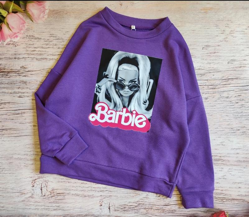 Крутий світшот з дуже якісної тканини👌,турецька петля👍Можна носити з джинсами,лосінами,шортами💫Наклейка-тренд всіх модниць БАРБІ заміри довжина/ пог/рукав від горловини 128_50/44/56 134_51/45/57 140-55/49/63 146-58/51/64