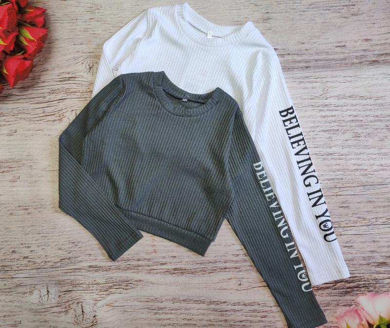 Укорочена кофтинка для дівчаток тканина мустанг рубчик заміри -довжина/ пог/ рукав від плеча 134-31/32/48 140-33/35/48 146-35/35/51 біла 134-1шт 140-1шт сіра 146-1шт