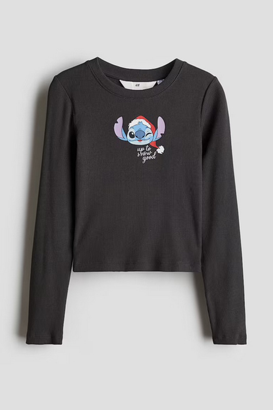 Топ в рубчик с длинными рукавами и принтом. Размер 146/152 (10-12Y)