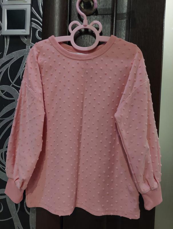 Розовый свитшот в структурный горошек от H&M. Состояние идеальное. На бирке 4-5 лет, можно дольше, полномерный.