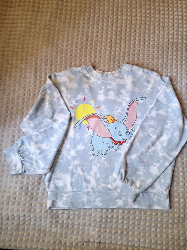 Реглан, принт тай дай, блакитного кольору, аплікація слоненятка, рукав спущений, крій овер, розмір 10-11років,(140-146)завжди більшомірять. Стан ідеальний. Заміри: довжина 50см., ПОГ 56см., рукав 41см.,ширина резинки внизу 40см.