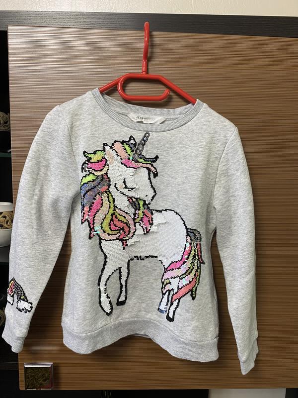 Світшот утеплений для дівчинки з єдиноріжкою. Блискітки-перевертаються на 6-8 років