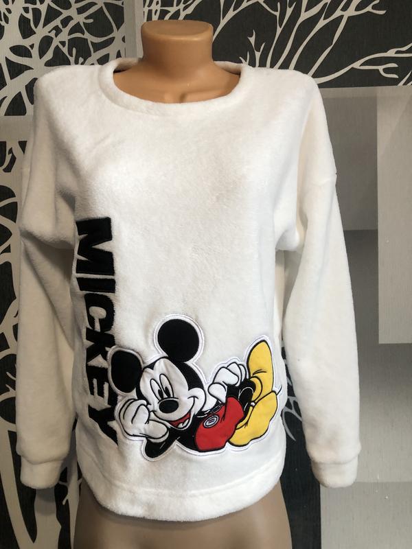 Яскравий і грайливий світшоп у класичному білому стилі із зображенням Мікі Мауса.Вільний крій,кругла горловина.Довжина54см.Пог50см.Пот 48см.Рукав 46см
