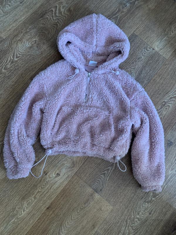 Приємна і мʼяка кофта теді, на підкладці, с капюшоном, колір пудровий.