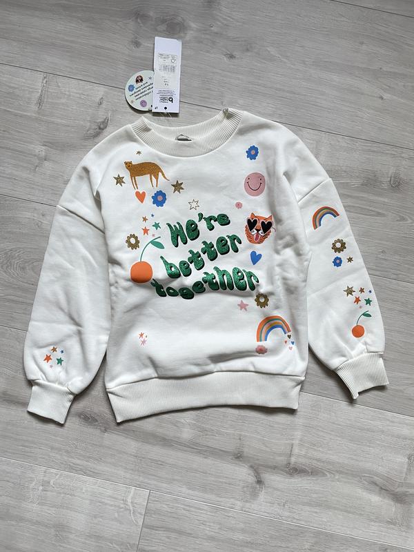 Красивая кофта Джордж на девочку с яркими рисунками, также есть на спинке и рукавчиках) Возраст: 5-6 110/116см Утеплена начосом. ширина 35/29см, длина 42см, рукав от горловины 47см