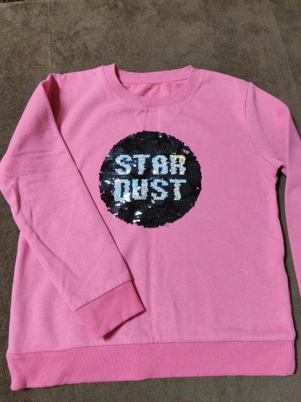 Свитшот розовый для девочки на рост 146-152, на легком флисе, рисунок с пайетками который меняется. длина 53 см, под руками 44 см, рукав от плеча 51 см, плечо 10 см.
