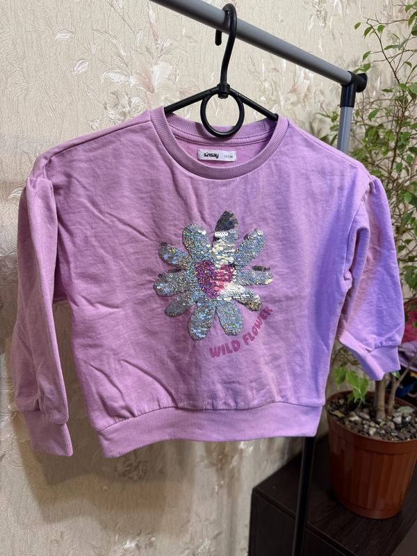 Яскравий світшот для Вашої модниці від Sinsay. Без утеплення. Розмір 110, буде довше. Квітка з паєток. Без дефектів, у дуже гарному стані