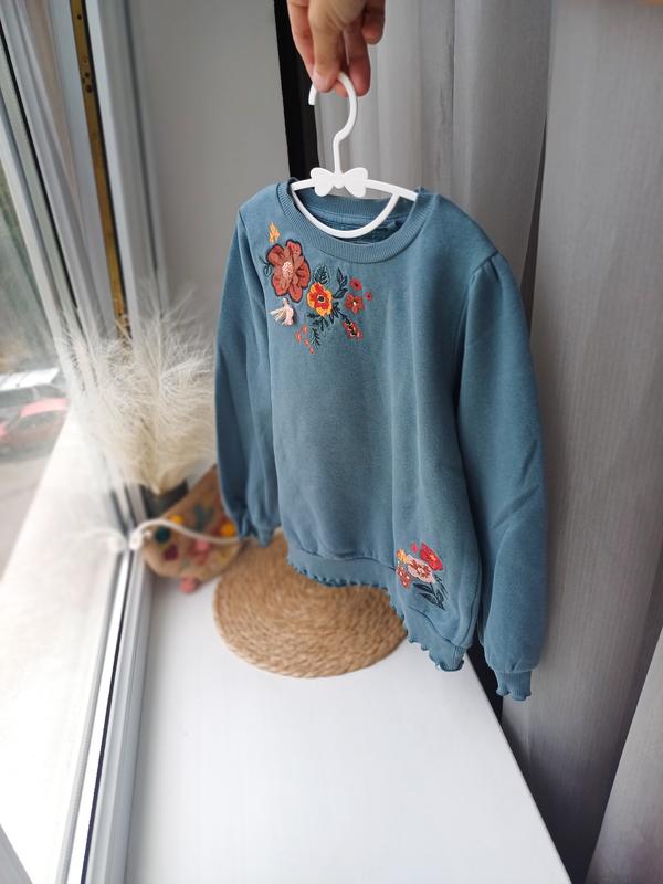 свитшот🌸 🏷7-8 р, рост 128 см, можно с 6 лет состояние отм 📐длина 45 см, пог 47 см, рукав от шеи 49 см.