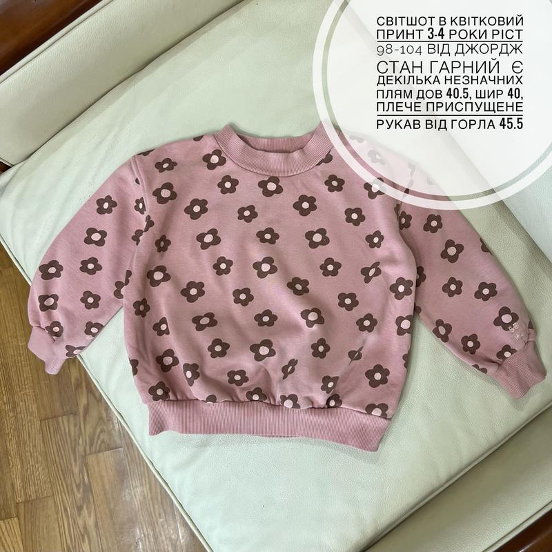 Світшот в квітковий принт 3-4 роки ріст 98-104 від Джордж стан гарний є декілька незначних плям дов 40.5, шир 40, плече приспущене рукав від горла 45.5