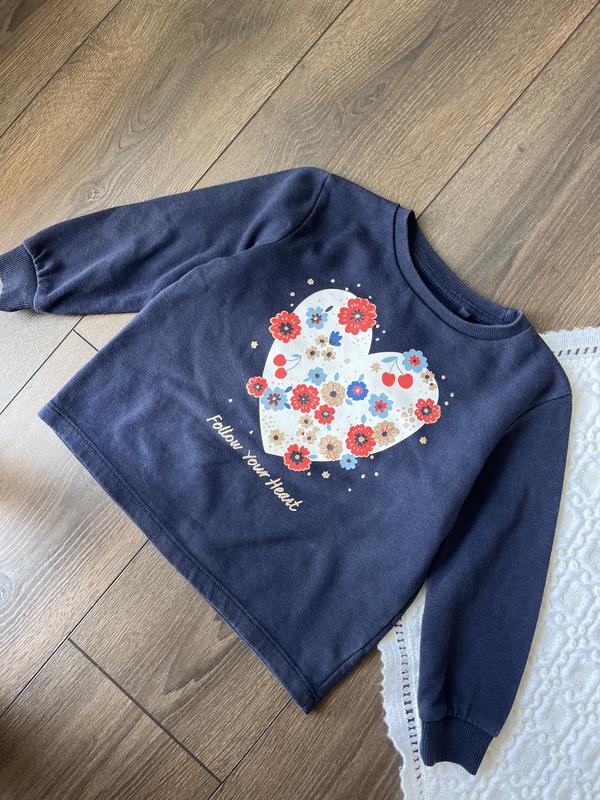 Темно синя кофта світшот для дівчинки з сердечком з блискітками 110 116 см